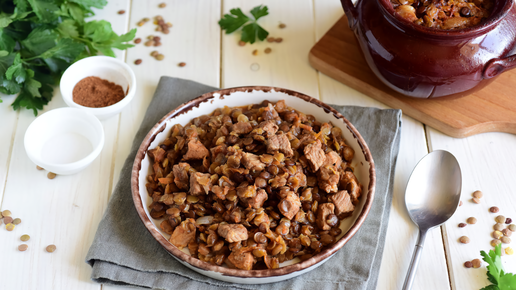 🍲 Чечевица с мясом в горшочке — видео рецепт