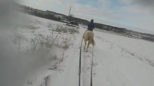 Зацепился за лошадь на лыжах