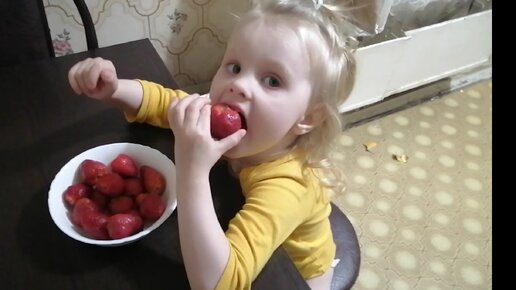 Влог: Малышка София, первый раз, пробует клубнику.