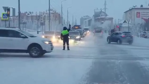 Регулировщик в Салехарде, ДПС не знает ПДД
