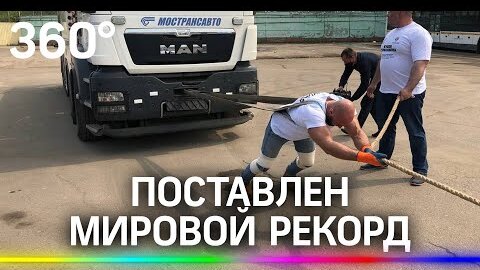 Мировой рекорд: русский богатырь протащил 40-тонный эвакуатор