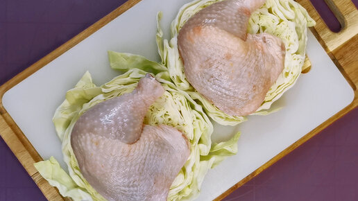 Куриные окорочка запекаю прямо на капусте в одном пакете, без форм, кастрюль и сковородок (рецепт в духовке)