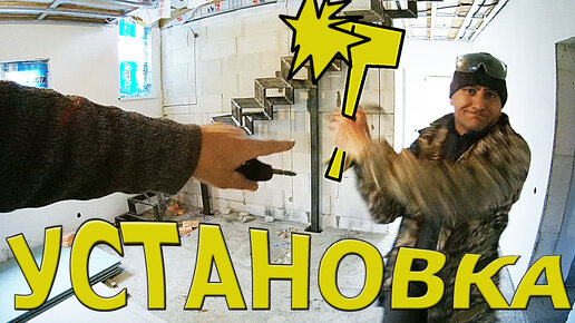 Установка лестницы в дом без ремонта на ломаных косоурах из профильной трубы 100х50 с перемычками.