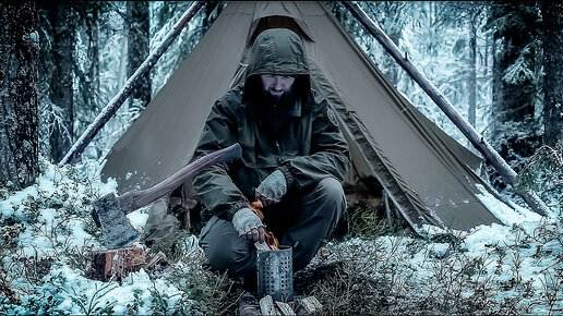 ЭКСТРИМАЛЬНАЯ НОЧЁВКА В ПАЛАТКЕ - СНЕЖНЫЙ ШТОРМ - ГОТОВЛЮ НА САМОДЕЛЬНОЙ ПЕЧКЕ