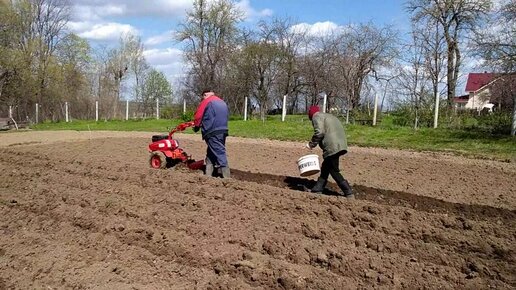 Сажаем картофель под мотоблок с плугом