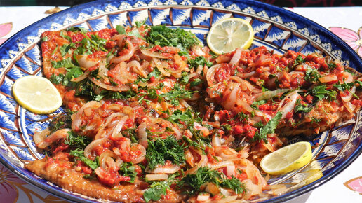 ЖАРЕНАЯ КАМБАЛА в ТОМАТНОМ СОУСЕ на большой чугунной сковороде и дровяной печи