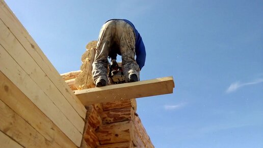 Дом с мансардой срубленный из бревна. Собираем двухэтажный сруб и пристрой к нему из бруса