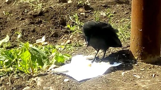 Подкармливаем молодого грача.