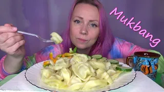 Мукбанг пельмени/ mukbang пельмени сочные с говядиной/ еда на камеру.