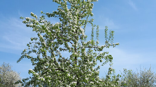 Цветёт вишня, слива и груши. Сад белый как невеста