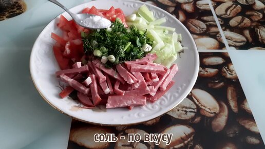 Салат за 5 минут из доступных продуктов. Салат с колбасой