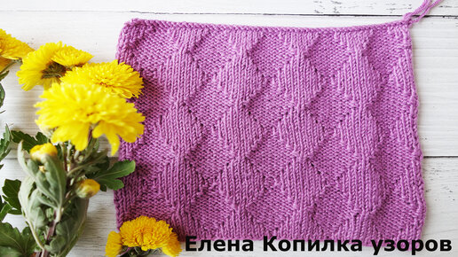 Простой рельефный узор спицами Ромбы схема и описание/Simple relief pattern with diamond Spokes