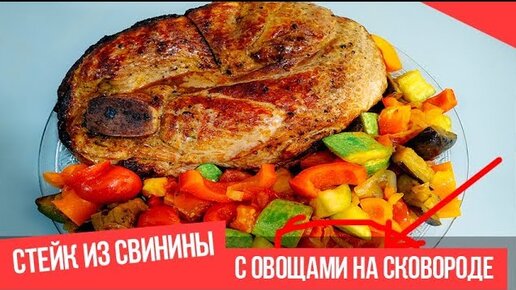 Стейк из свинины с овощами на сковороде