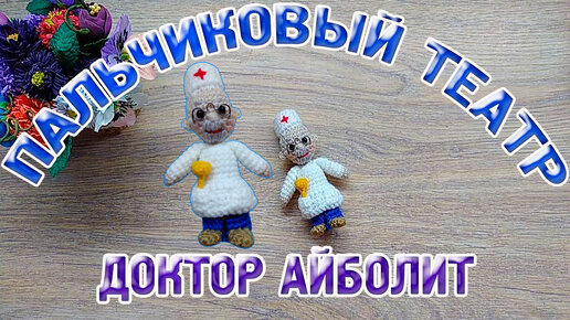 МК Пальчиковый кукольный театр Сказка Доктор Айболит Вяжем Доктора Айболита часть 2