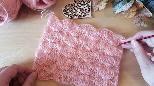 Вяжем узор "Веера из вытянутых столбиков" крючком.