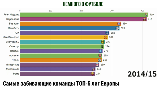 ТОП-14 самых забивающих клубов из ТОП-5 лиг Европы за последние 10 лет.