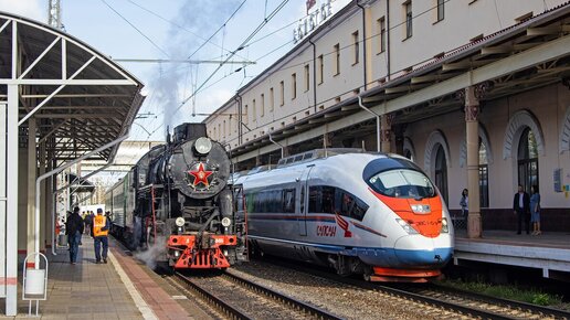 Сапсан и паровоз. Встреча прошлого с будущим.