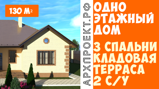 Одноэтажный дом. Проект №5. С тремя спальнями, 130 м², с кладовой, с двумя санузлами. АРХИПРОЕКТ.РФ