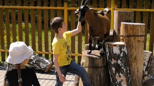 Контактный зоопарк в Белгороде. Коза насторожилась и прогнала девочку от козлёнка