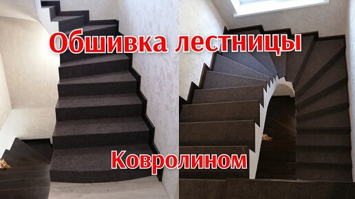 Отделка лестницы ковролином, бюджетная отделка лестницы.