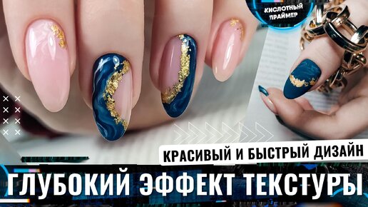 БЫСТРЫЙ дизайн ногтей: синий маникюр и текстуры на ногтях😍Мраморный маникюр и золотая поталь 💯ТРЕНД