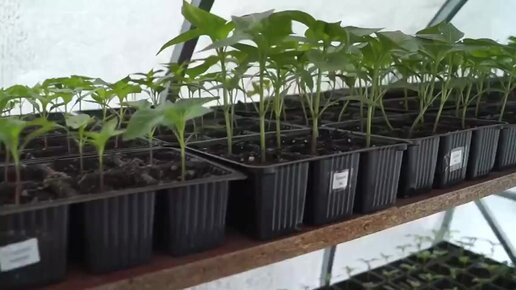 Выращивание рассады томатов, перцев и цветов в обычной теплице. Погода на улице -4 градуса.