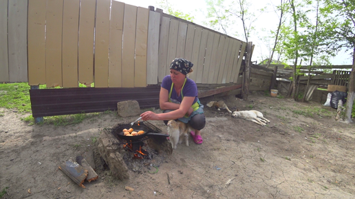 Делаю морковные котлеты , жарю в сковороде на костре .
