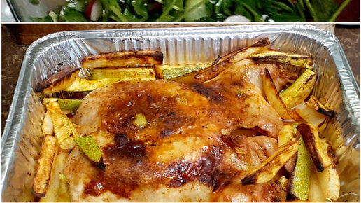 Запекаем курицу из которой достали все кости. Весенние овощи идеально подходят.