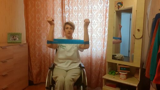Разминка с резинками, аэробика для людей с инвалидностью.