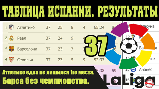 Подводим итоги 37 тура Чемпионат Испании (Ла Лига). Результаты, таблица и расписание.