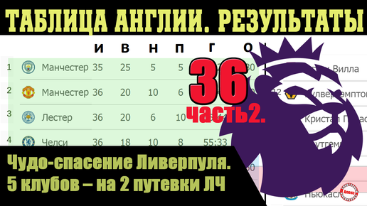 Подводим итоги 36 тура Чемпионат Англии (АПЛ). Результаты, таблица и расписание.