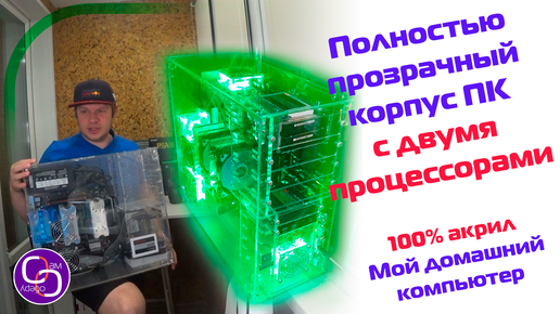 Полностью прозрачный корпус ПК. Мой домашний компьютер с 2 процессорами.