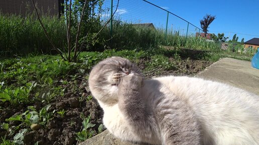 Пришла жара. Котик Кевин во дворе решил поваляться