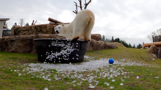 Белая медведица приняла ледяную ванну в зоопарке Орегона