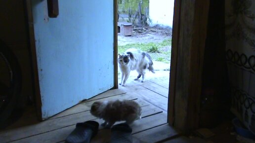 Найденыши знакомятся с кошками.
