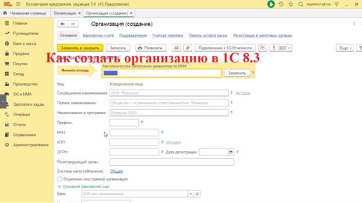 Как создать организацию в 1с 8.3 Бухгалтерия