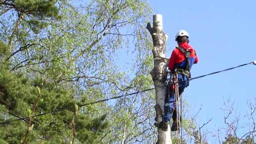 С большим удовольствием смотрел как правильно пилят проблемные деревья