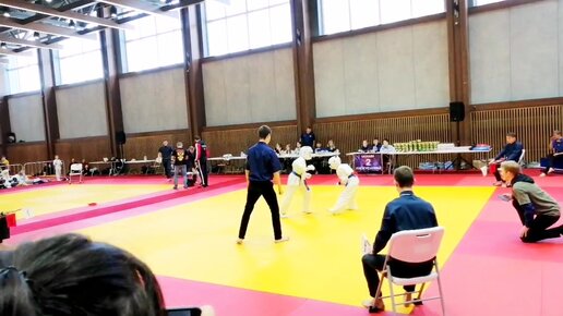 Детский турнир по киокусинкай. Победа с оценкой "вадзари".