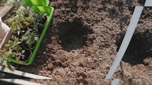 Высаживаю рассаду томатов в торфяных горшочках в парник, в междурядья сею свёклу