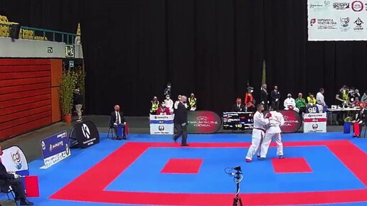 Боец в красном пытался проводить аши барай, из за этого проиграл. Косово против Египта на международном турнире по каратэ.