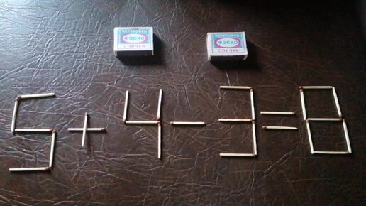 Решаем головоломку из спичек 5+4-3=8. Переложить можно только 1 спичку чтобы равенства стало верным, ответ в конце