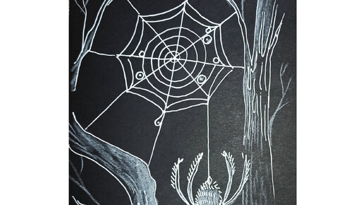🕷Как нарисовать паучка белым линером на черной бумаге🕸