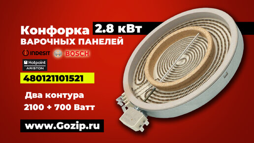 Конфорка 2100+700Вт стеклокерамической панели Ariston / indesit / Whirlpool 481225998396