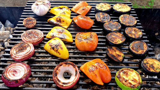 Как приготовить овощи на гриле: божественные баклажаны, кабачки, перец и помидоры на углях.