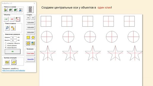 Функции "центральные оси" макроса ToolBarPlus для CorelDraw