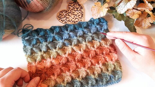 Вяжем рельефный узор с пышными столбиками крючком.