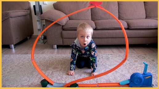 Андрюша и папа выполняют трюки с машинками