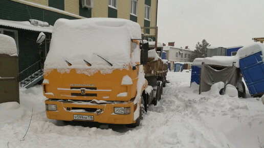 Первая попытка освободить КАМАЗ от прицепа. КАМАЗ не на ходу.
