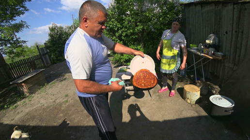Делаю яблочно-тыквенный пирог в сковороде на костре .