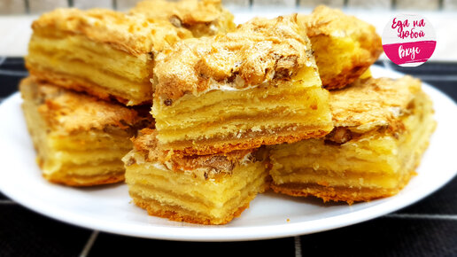 Не могу сказать, пирог или пирожное? Новый слоеный рецепт. Знаю одно - очень вкусное (просто раскатываем, смазываем, в духовку)
